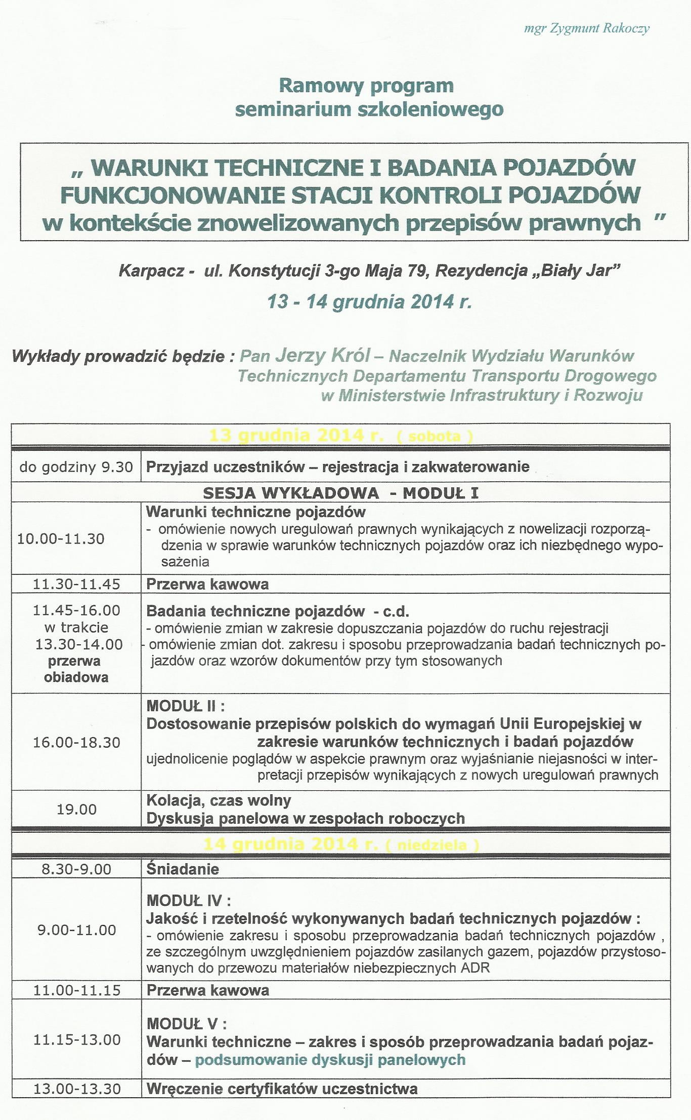 Jestem przekonany, że warto, bo prelegentem będzie p. Jerzy Król – Naczelnik Wydziału Warunków Technicznych Departamentu Transportu Drogowego w MIiR.