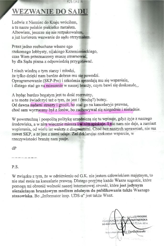 Oprogramowanie SKP pro,które sprzedaje GK,jest marnej jakości i wie o tym każdy kto miał możliwość pracy przy użyciu innych programów.Gołym okiem widać,że brak w nim praktycznego podejścia do warunków pracy na SKP.Natomiast postawa w/w GK świadczy o jego bucie i pysze.Wykorzystuje niedoróbki legislacyjne,swoimi interpretacjami/owszem nie zawsze jasnych procedur/sieje zamęt w środowisku diagnostów.Błażeju,podziwiam Twoją postawę,choć nie zawsze się zgadzam z Twoimi opiniami.3-maj się!Pozdrawiam Gral.