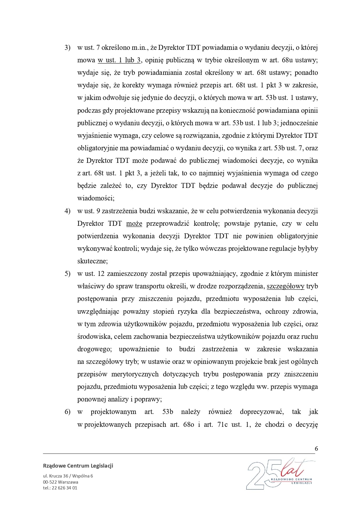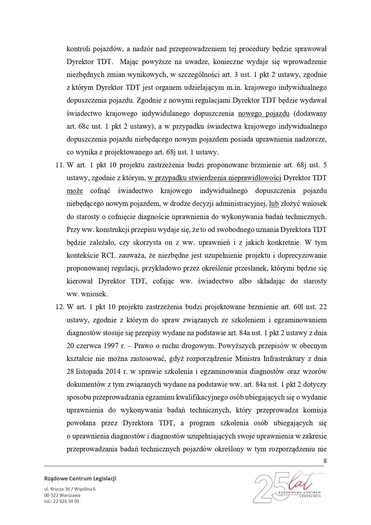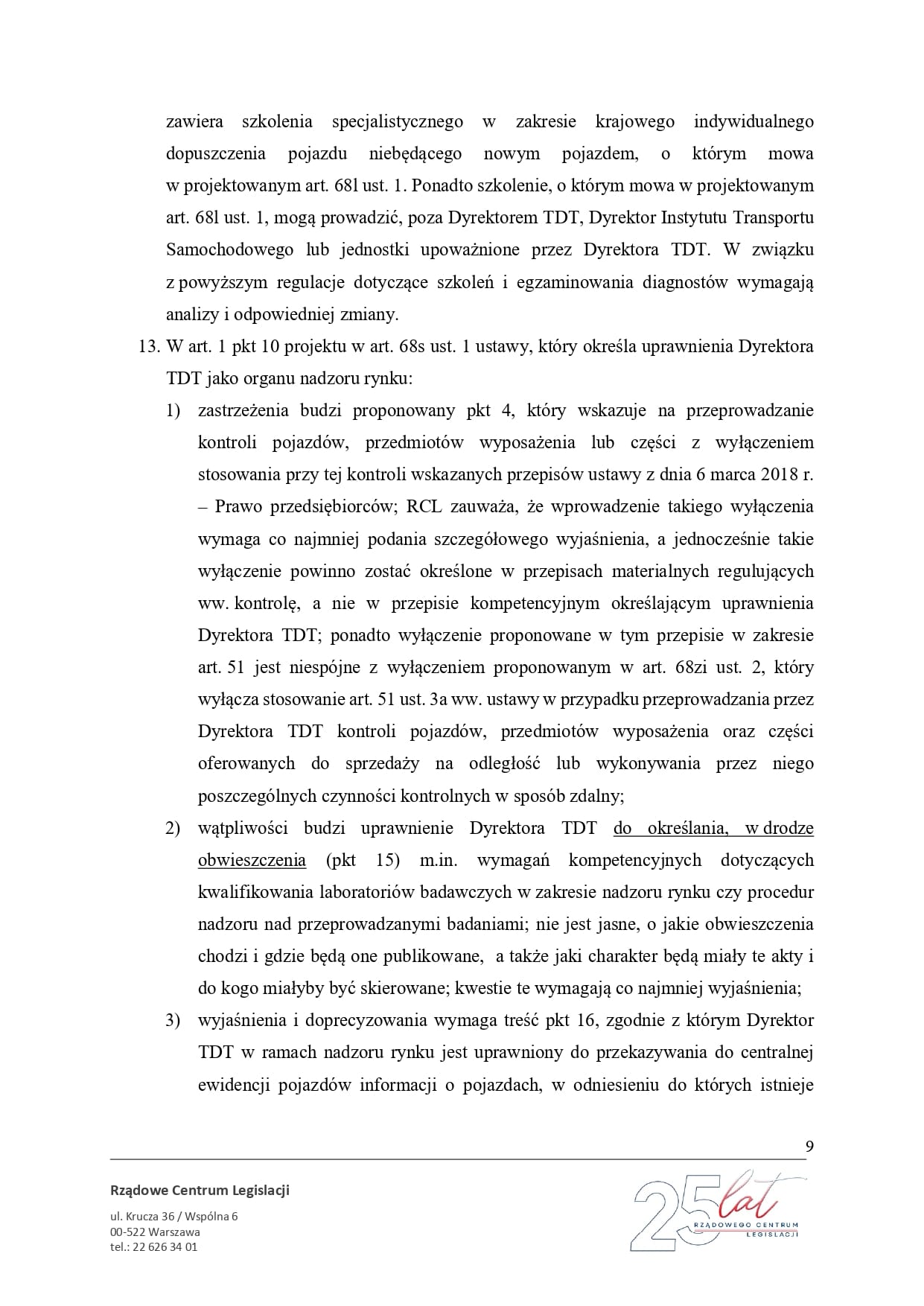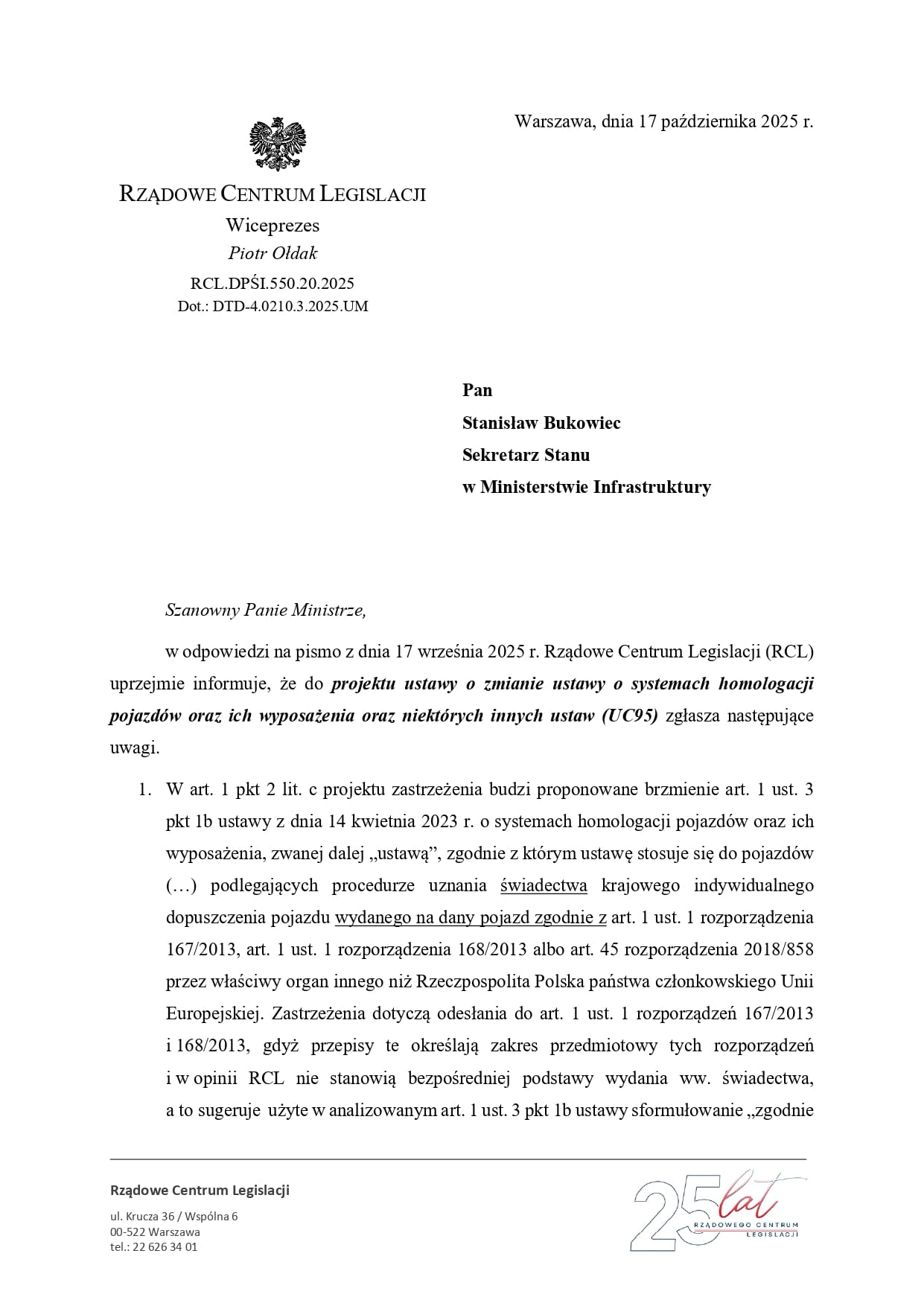 WAŻNE UWAGI RCL O PROJEKCIE UC95