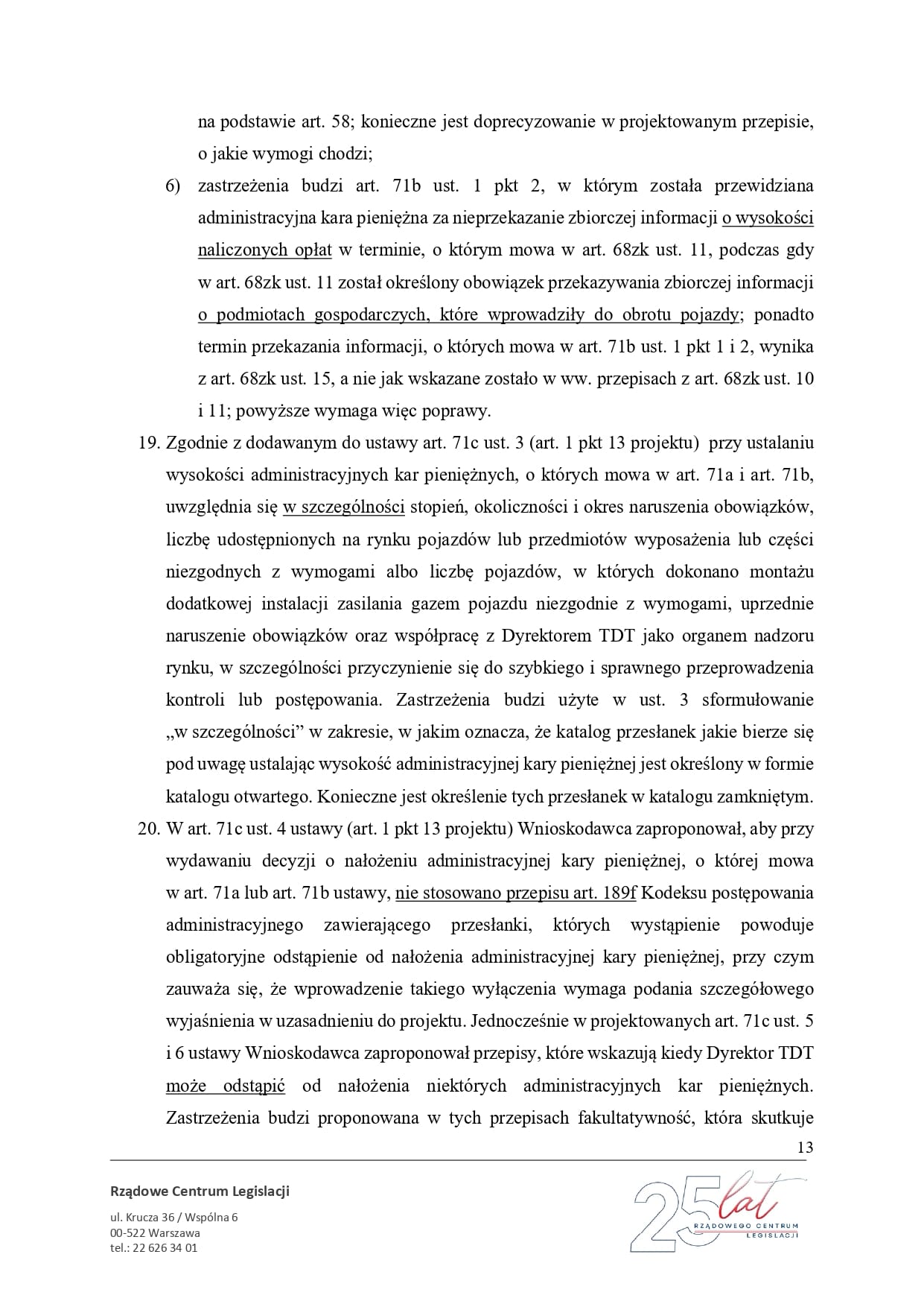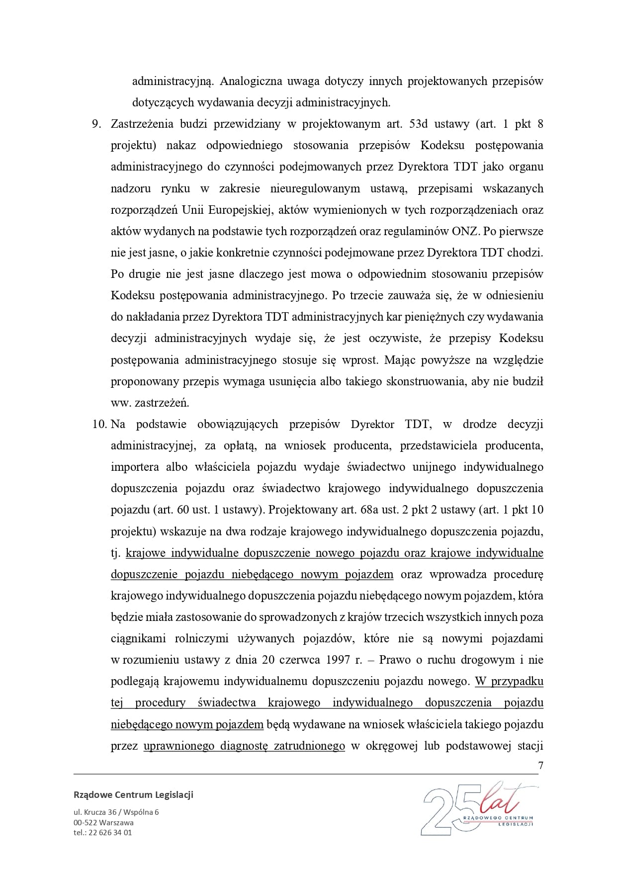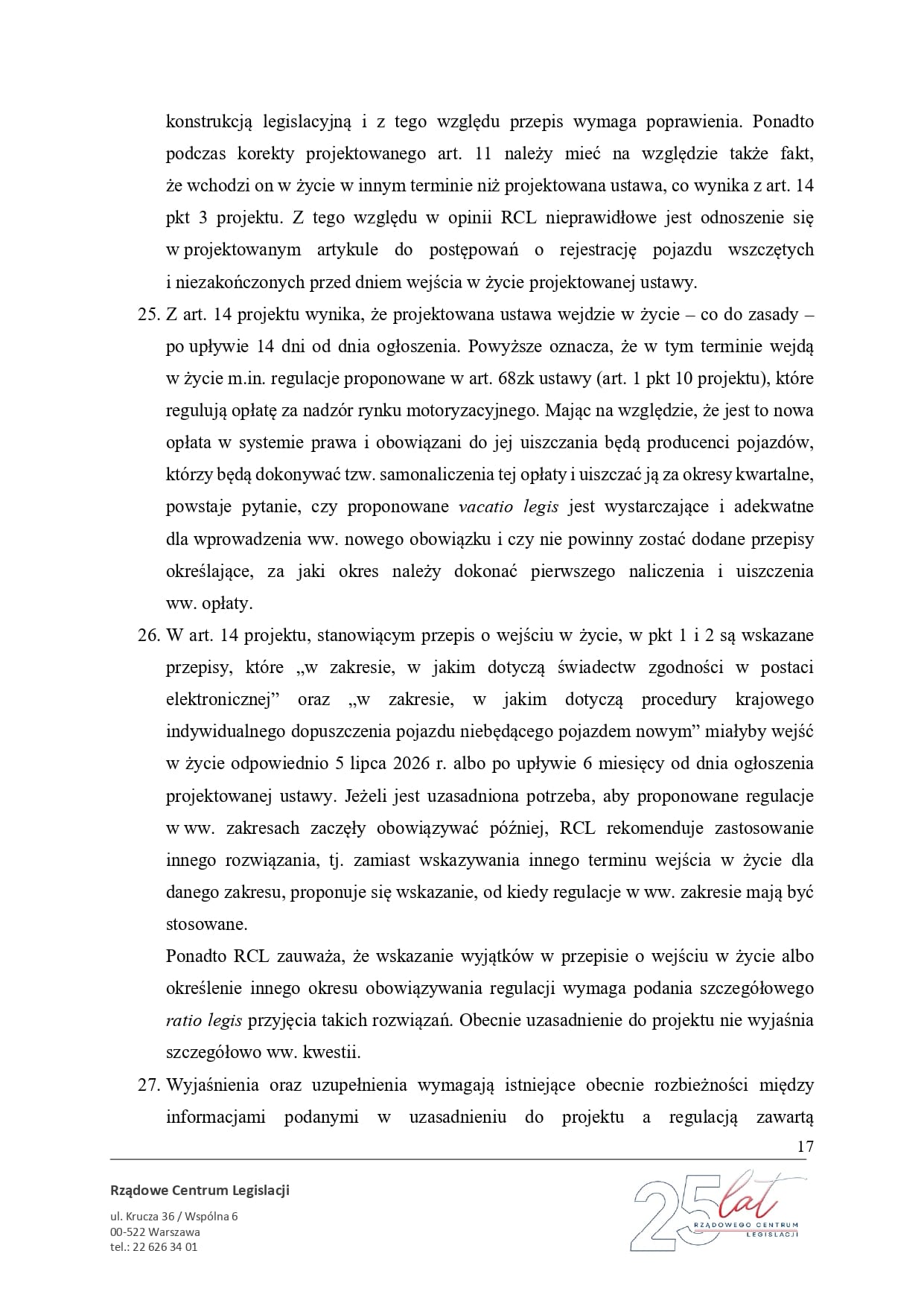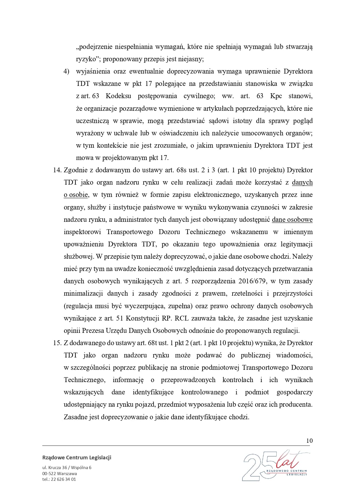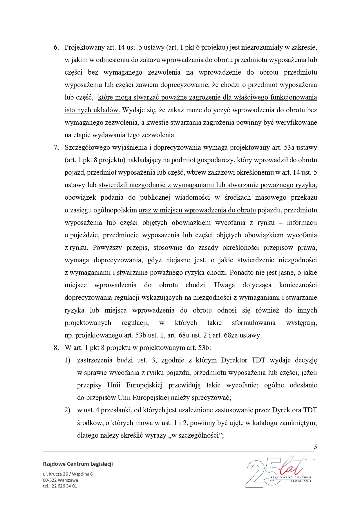 WAŻNE UWAGI RCL O PROJEKCIE UC95