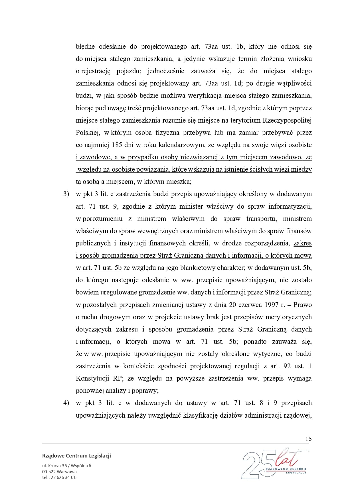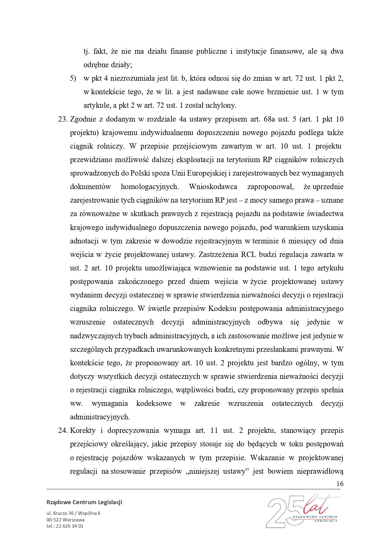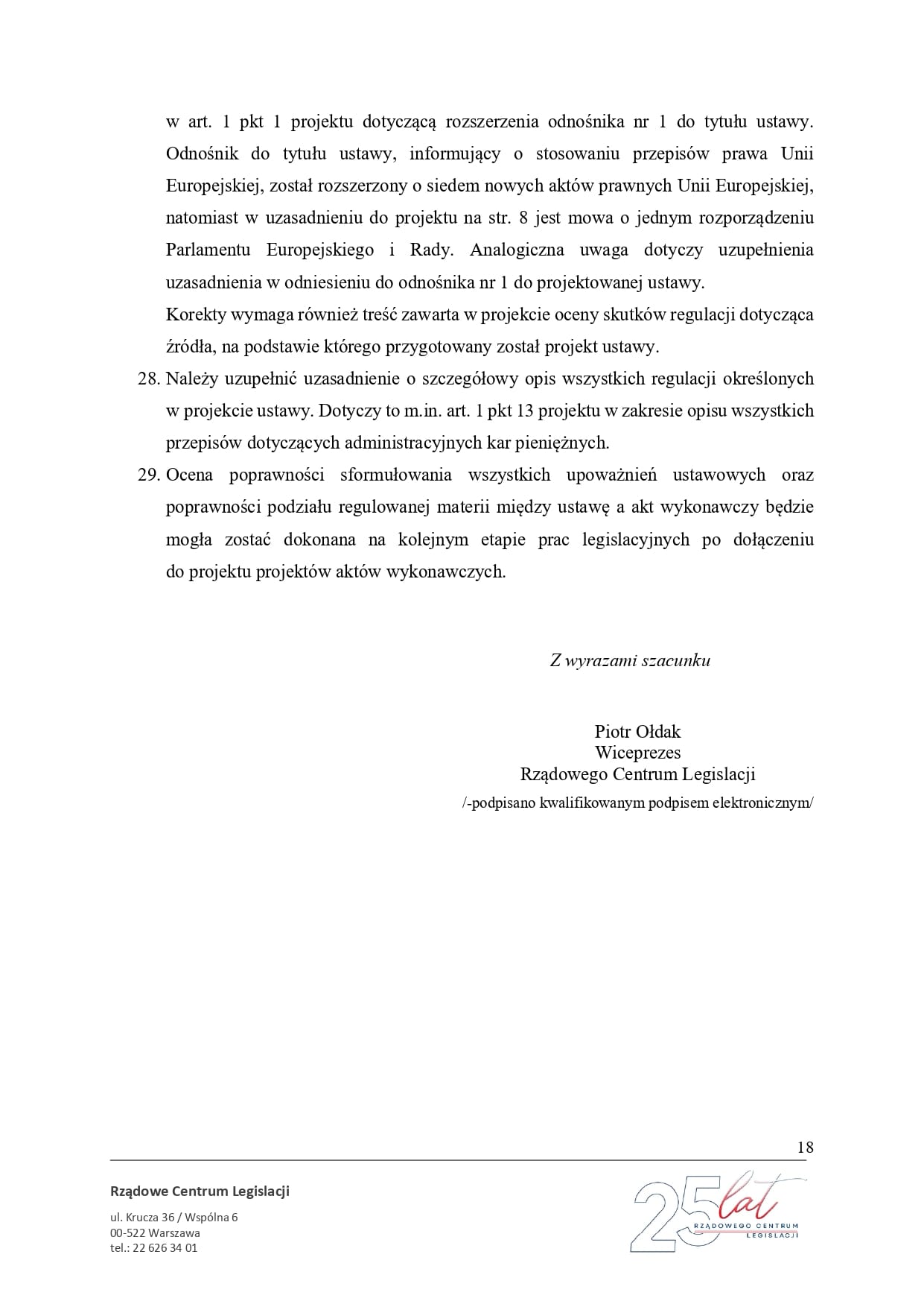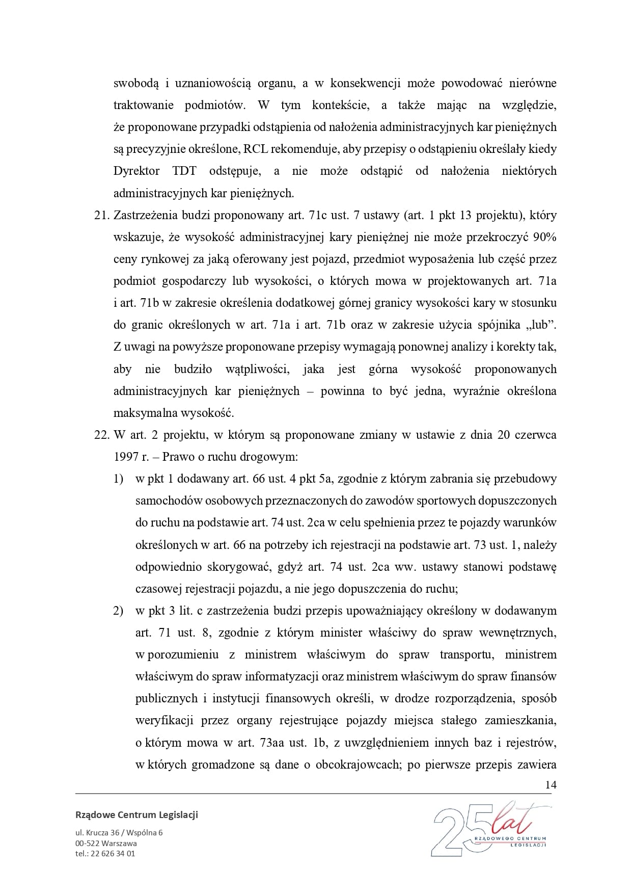 WAŻNE UWAGI RCL O PROJEKCIE UC95