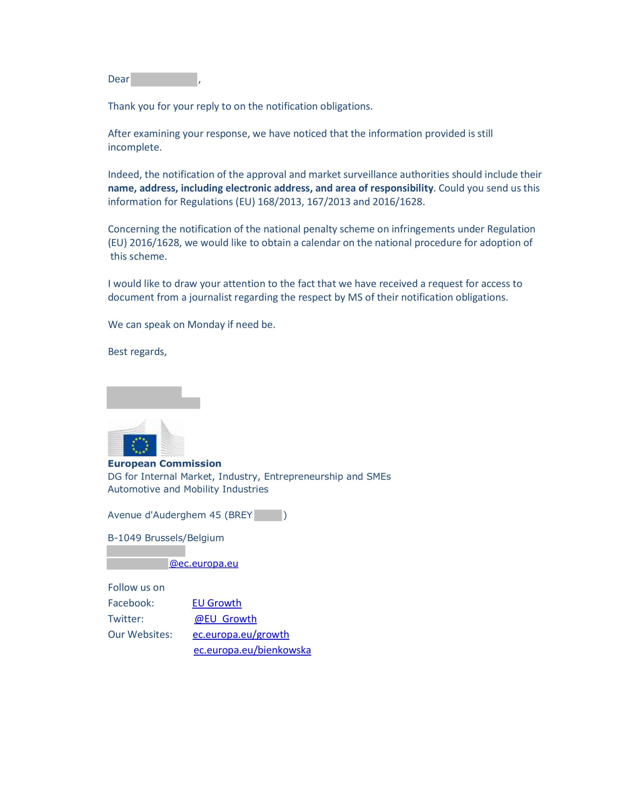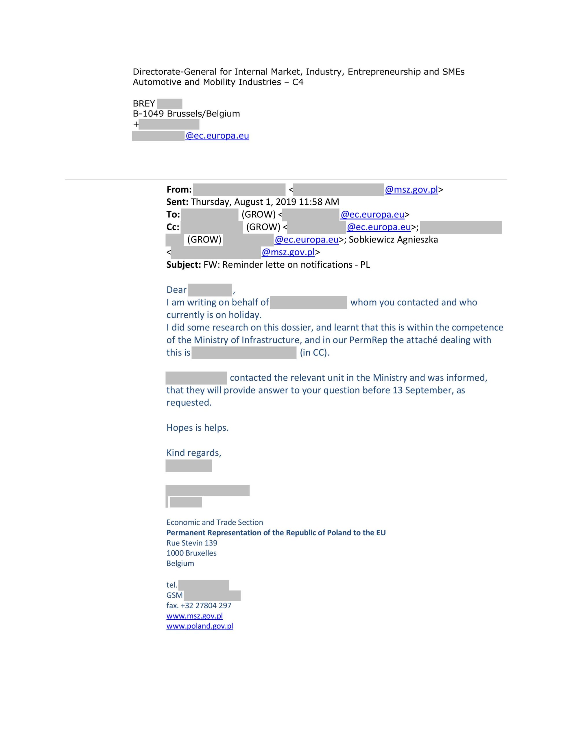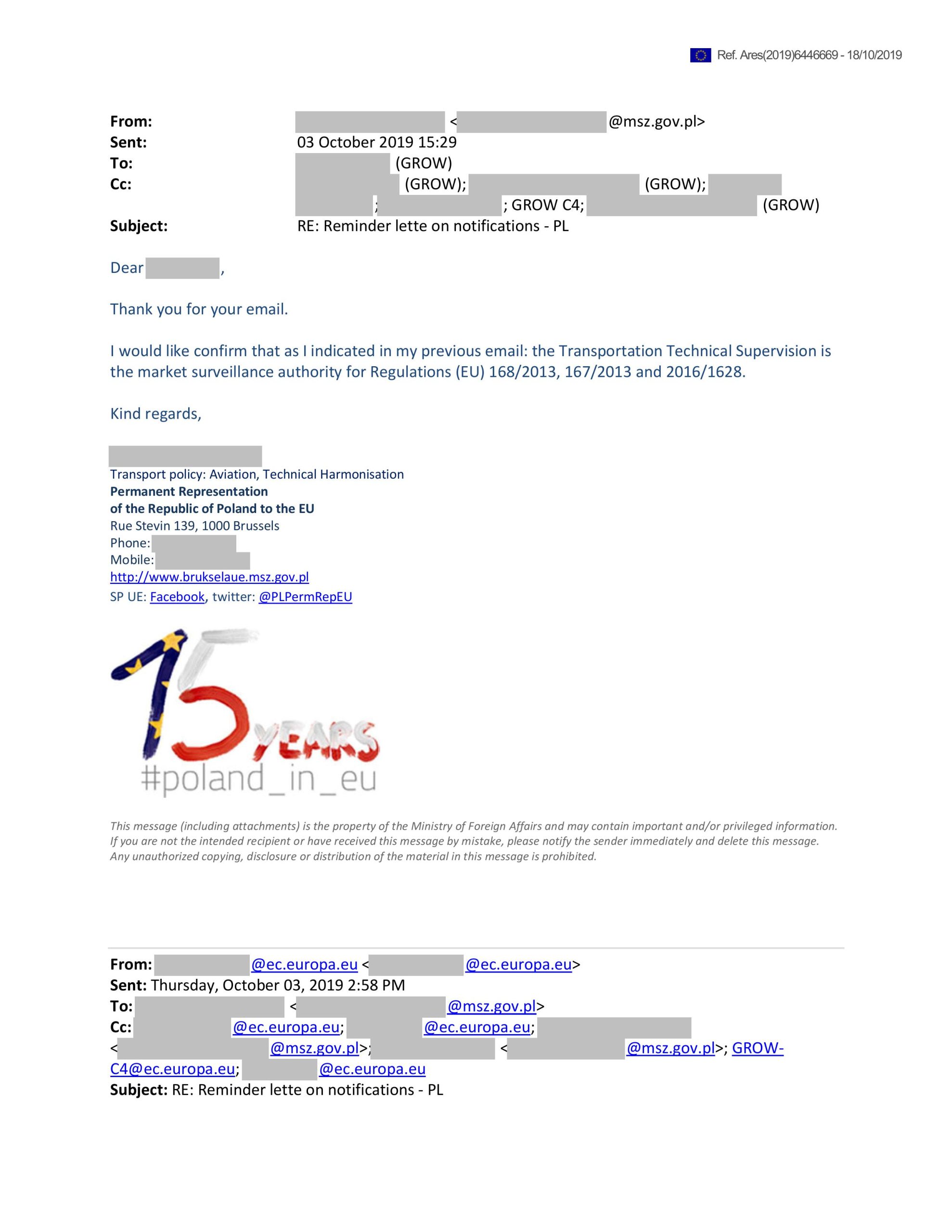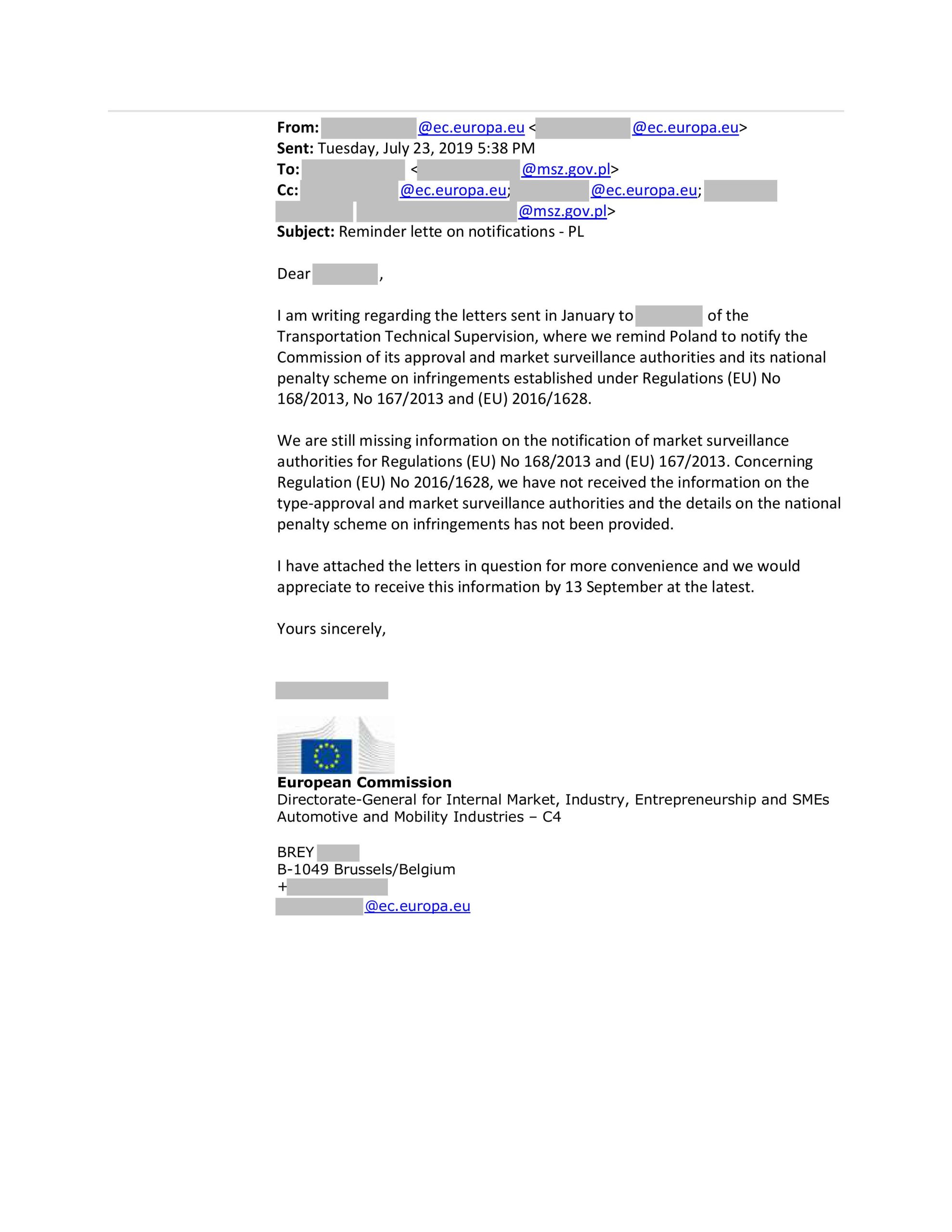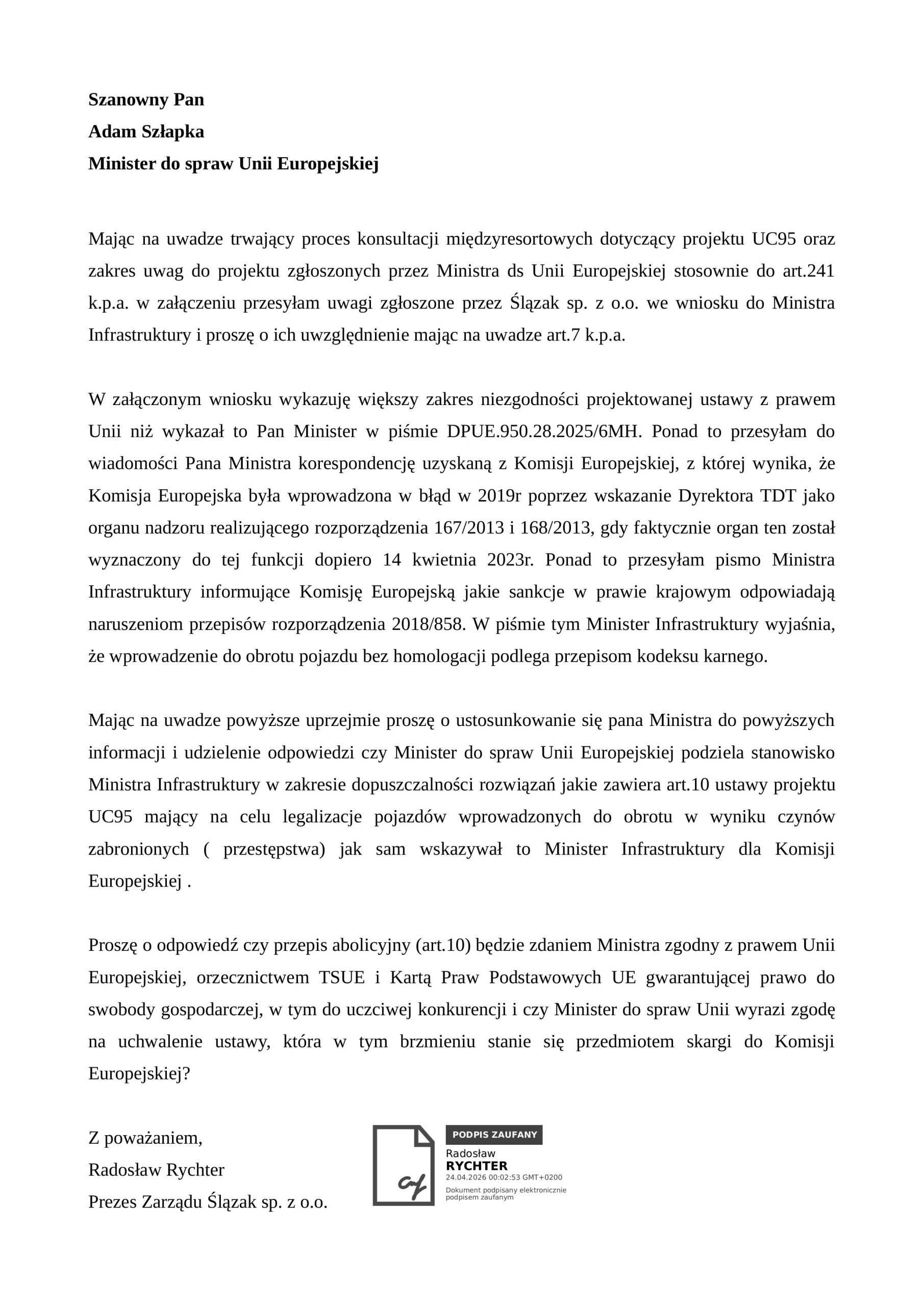 WNIOSEK DO MINISTRA DS UNII EUROPEJSKIEJ W SPRAWIE NIEPRAWIDŁOWOŚCI W MI